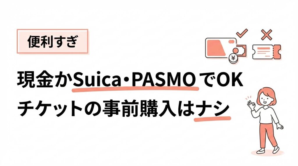 A、現金またはICカード(Suica,PASMOなど)